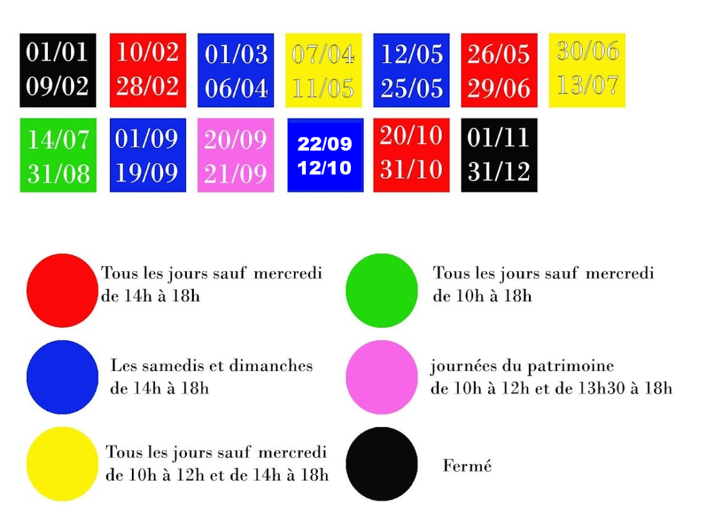JOURS ET HORAIRES D’OUVERTURE POUR 2025